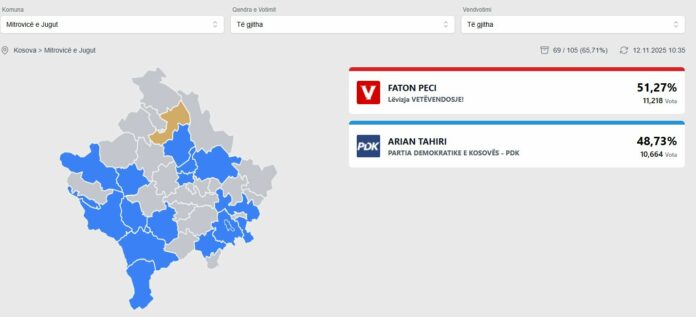 Deri më tani sipas KQZ-së në QKN në Mitrovicë është kryer numërimi i 69 vendvotimeve, nga 105 sa janë në total.