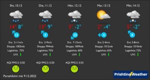 12.12 – Më ftohtë, kryesisht vranët dhe me reshje shiu, që me rënie të temperaturës deri në mbrëmje shndërrohen edhe në reshje bore.