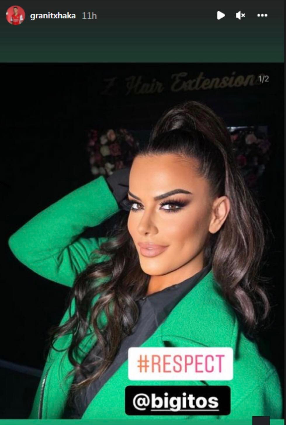 Futbollisti, Granit Xhaka ka publikuar një foto të Big Mamës në storien e tij në Instagram teksa e ka mbështetur.