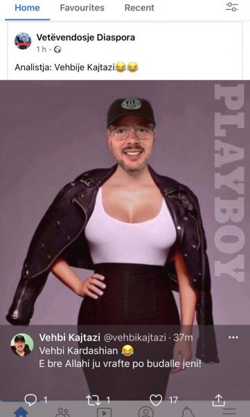 “Vehbi Kardashian, e bre Allahi ju vraftë po budallë jeni!”, ka shkruar Kajtazi në Facebook.