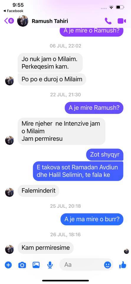 Zeka të paktën tre herë e kishte pyetur Tahirin lidhur me shëndetin e tij. Gjithashtu i kishte çuar edhe të fala nga miqtë e tjerë.