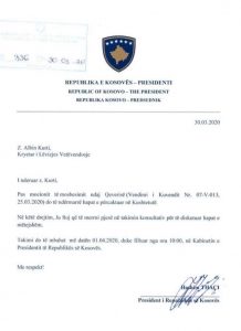 Më tej në shkresën e Presidentit dërguar Kurtit shkruan se takimi do të mbahet më 01.04.2010, duke filluar nga ora 10:00, në Kabinetin e Presidentit të Kosovës. /Reporteri.net/.