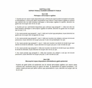 Në Kodin Penal të Republikës së Kosovës, në nenin 249 dhe 250 shpjegohet saktësisht se si gjobiten dhe dënohet personat që nuk veprojnë sipas depozitave apo urdhrave të organit kompetent.