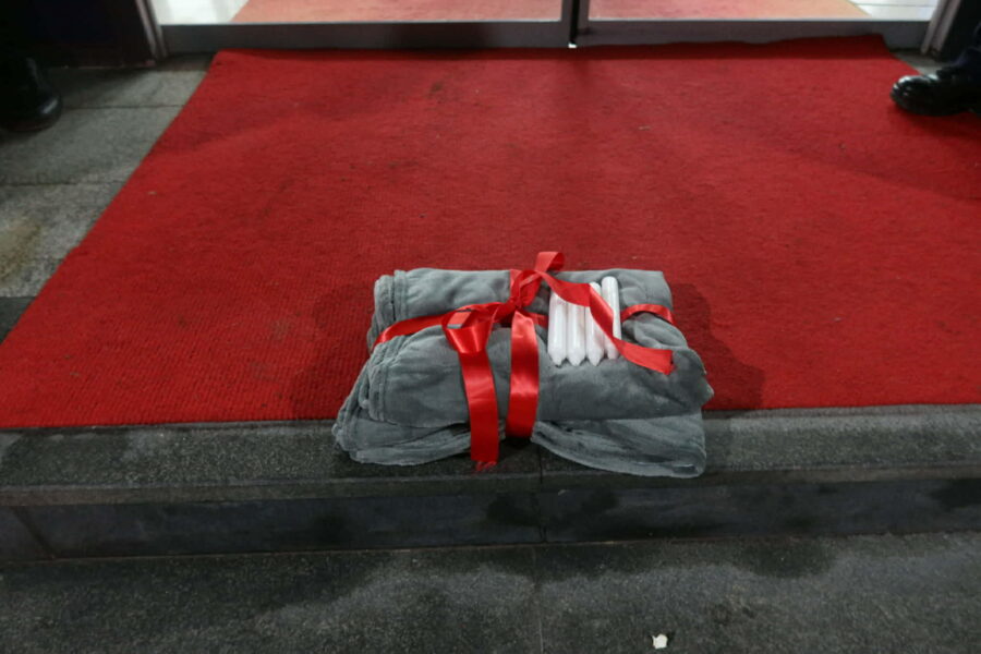 Gjatë këtij aksioni, Rinia Demokratike e Kosovës ka vendosur para ndërtesës së Qeverisë një batanije dhe disa qirinj, si simbol i pakënaqësisë ndaj deklaratave provokuese dhe të papërgjegjshme të kryeministrit në detyrë, i cili ka fajësuar qytetarët për krizën energjetike, duke pretenduar se “po ngrohen më shumë sesa që duhet”.