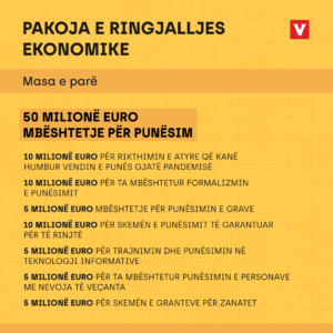 Në njoftimin e tyre bëhet e ditur se në mesin e tetë pikave qeveria parasheh të ndajë 50 milionë euro për mbështetje për punësim dhe 10 milionë euro për rikthimin e atyre që kanë humbur vendin e punës gjatë pandemisë, njofton Klankosova.tv.