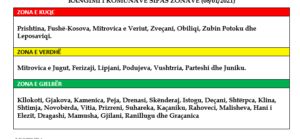 Ministria e Shëndetësisë ka bërë rangimin e ri të komunave sipas zonave bazuar në rezultatat e IKSHPK’së, përkatësisht numrin e rasteve të reja të COVID-19 në 100.000 banorë në intervalin kohor prej shtatë ditësh, transmeton Gazeta Metro.