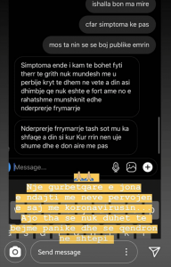 Megjithatë një shqiptare që jeton jashtë territoreve shqiptare e që ka dashur të jetë anonime ka treguar simptomat e saj që është prekur nga ky virus.
