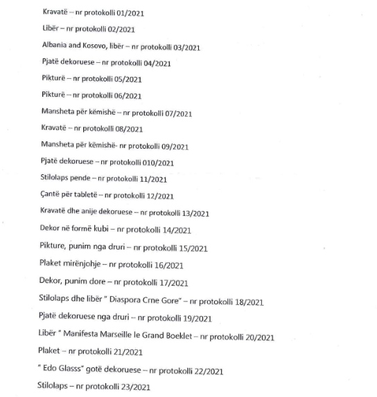 Në dokumentet që Zyra e kryeministrit i ka dërguar Radio Evropës së Lirë, nuk ceket vlera monetare e këtyre dhuratave.