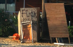 Së fundi imazhe jo të mira vijnë nga Durrësi. Një lexues i Gazeta Metros ka dërguar dy fotografi ku shihet se në një hapësirë të plazhit në Durrës është shkruar ‘F*ck Kosova’.
