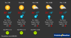 Sipas Prishtina Weather sot do të jetë kryesisht me diell dhe jo aq nxehtë.