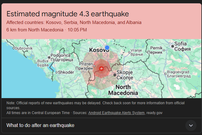 Hyni Mirë se vini! Hyni në llogarinë tuaj Emri i përdoruesit tuaj fjalëkalimi juaj Forgot your password? Get help Krijo nje llogari Krijo nje llogari Mirëpritur! regjistrohuni për një llogari emaili juaj Emri i përdoruesit tuaj Një fjalëkalim do t'ju dërgohet në email Shërim fjalëkalimin Rikupero fjalëkalimin emaili juaj Një fjalëkalim do t'ju dërgohet në email LAJME Termet në Kosovë 10 Shkurt, 2026 - 22:12 10 Shkurt, 2026 - 22:12 By Mitrovica Sot Shpërndaje FacebookTwitterPinterestWhatsApp Një lëkundje tërmeti me magnitudë 4.3 të shkallës Rihter ka goditur Kosovën mbrëmjen e sotme, rreth orës 22:05. Deri në këto momente, nuk është njoftuar për dëme potenciale apo për persona të lënduar. Lajmi në përditësim… Shpërndaje FacebookTwitterPinterestWhatsApp TË FUNDIT Të mërkurën në Kosovë mban mot i mirë, mund të ketë reshje shiu MitrovicaSot - 10 Shkurt, 2026 - 23:25 Shërbimi Gjeologjik konfirmon tërmetin: Kishte potencial rrezikimin e qytetarëve dhe shkaktimin e dëmeve MitrovicaSot - 10 Shkurt, 2026 - 22:46 Policia arreston dy bjellorusë dhe një rus, përfshihet edhe AKI MitrovicaSot - 10 Shkurt, 2026 - 21:10 Bekim Jashari: UÇK-ja është e pastër si loti, akuzat janë propagandë e Serbisë MitrovicaSot - 10 Shkurt, 2026 - 20:51 TË FUNDIT Të mërkurën në Kosovë mban mot i mirë, mund të ketë reshje shiu 10 Shkurt, 2026 - 23:25 Shërbimi Gjeologjik konfirmon tërmetin: Kishte potencial rrezikimin e qytetarëve dhe shkaktimin e dëmeve 10 Shkurt, 2026 - 22:46 Policia arreston dy bjellorusë dhe një rus, përfshihet edhe AKI 10 Shkurt, 2026 - 21:10 Bekim Jashari: UÇK-ja është e pastër si loti, akuzat janë propagandë e Serbisë 10 Shkurt, 2026 - 20:51