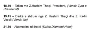 Me këta dy të fundit është planifikuar që Rama të darkojë në njërin nga restaurantet e Prishtinës, vetëm një orë pas takimit të tij me Presidentin Thaçi, që do të fillojë nga ora 18:50.
