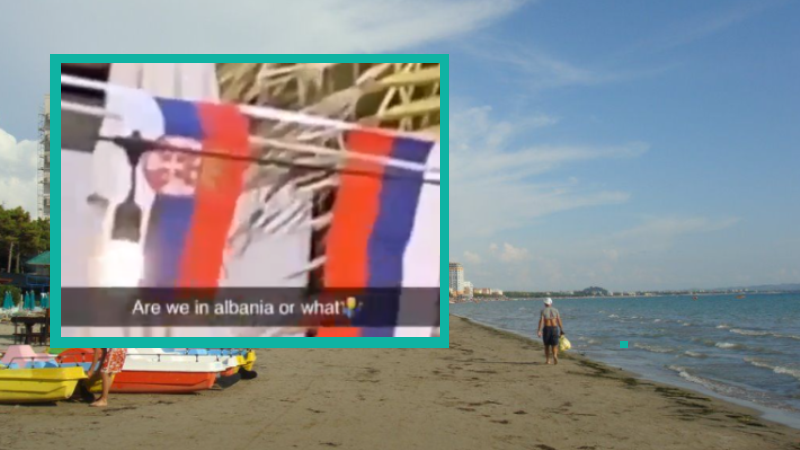 Ai ka dërguar një video ku shihet se në mesin e flamujve të vendosur aty nga stafi i restuarantit, është flamuri serb.