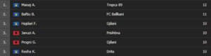 Blend Baftiu i Ballkanit nuk arriti që të shënoi as këtë javë, megjithatë vazhdon ta mbajë pozitën e dytë me 10 gola.