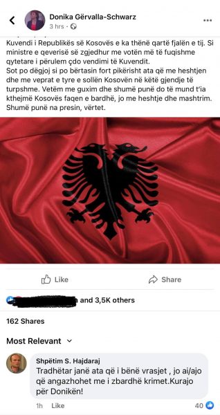 Shpëtim Hajdaraj ka komentuar në postimin e Donika Gërvallës ku kërkonte drejtësi për krimet e pasluftës.
