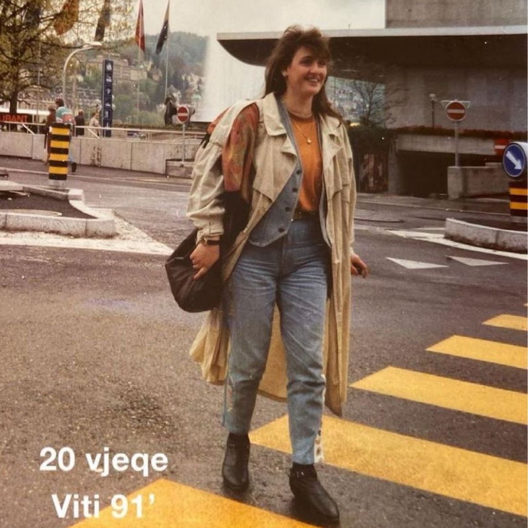 “21 vjeç- viti 91. Edhe ne ishim plot stil, por shyqyr s’ka pasur Instagram e Facebook por kemi jetuar realitetin”, shkruan në fotografinë që ajo ka publikuar në Story.