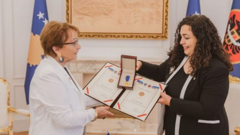Vjosa Osmani ia dorëzon ish-eurodeputetes çmimin me të cilin e dekoroi ish-presidenti Rugova