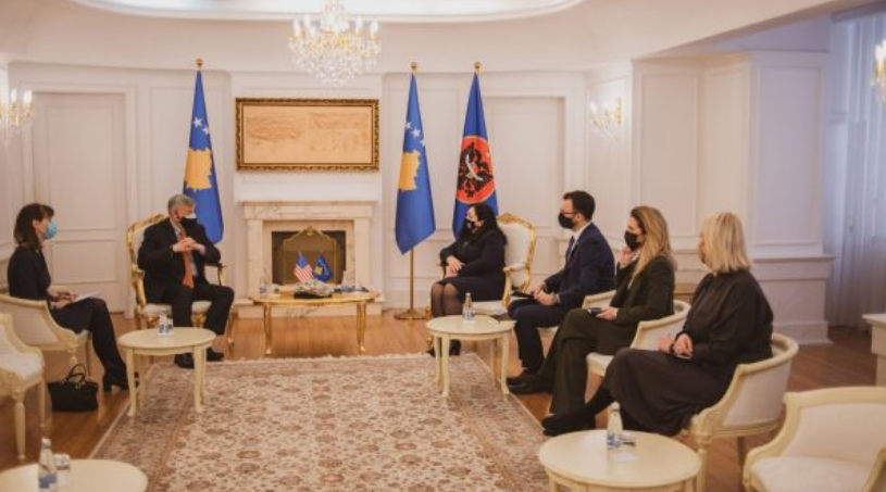 Artisti kosovar, Genc Prelvukaj, i cili ka shërbyer edhe si këshilltar politik në Ministrinë e Kulturës dhe Ministrinë e Bujqësisë, ka reaguar ndaj një fotografie të presidentes Vjosa Osmani, në të cilën shihet flamuri Dardan gjatë një takimi që shefja e shtetit ka pasur me ambasadorin amerikan në Presidencë.