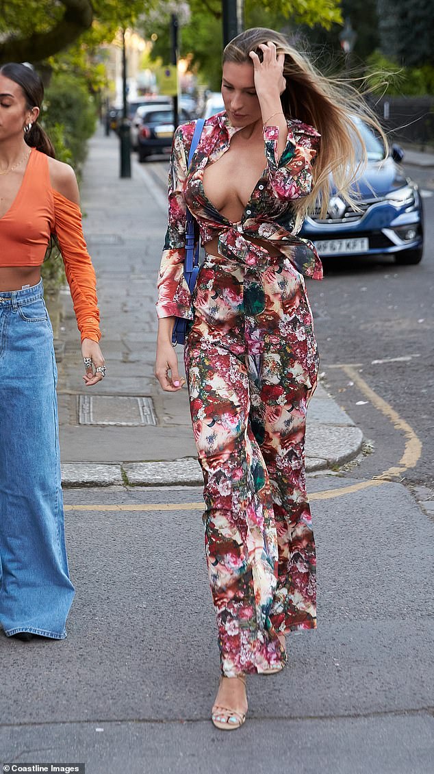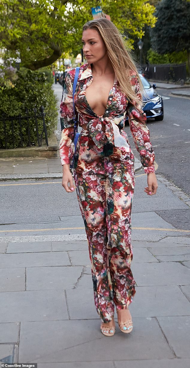 Zara McDermott ka treguar pothuajse tërë gjoksin e saj pasi që ka dalë pa jelek në një këmishë dhe pantallona me lule për darkë
